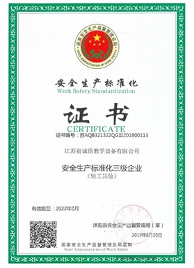 江蘇省誠信教學設備有限公司成立于2003年,是一家專注教學設備研究開發(fā)、生產制造、銷售服務為一體的綜合性教育、服務型企業,是江蘇省教育設備行業協會會員單位、中國教育裝備行業協會會員單位,公司先后通過ISO9001國際質量管理體系認證、IS14001國際環(huán)境管理體系認證、OHSAS18001職業健康安全管理體系認證。數十年的激勵前行鑄就企業優(yōu)質的產品品質和服務質量。